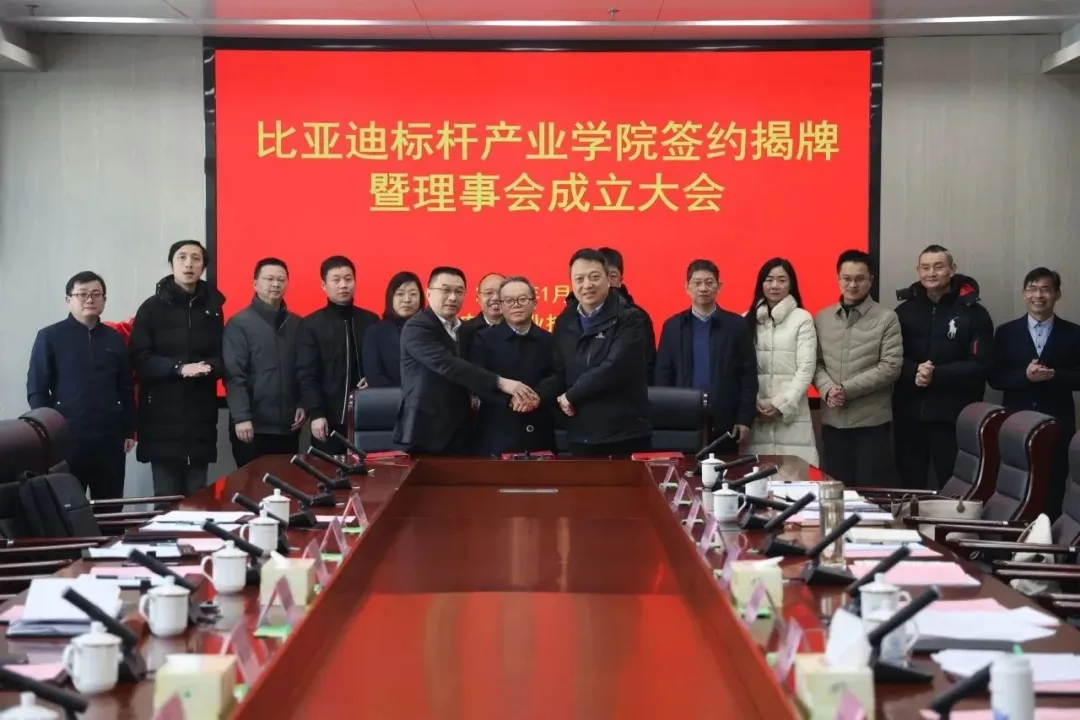 2024年1月23日,由安徽職業技術學院、比亞迪股份有限公司、深圳風向標產教融科技有限公司三方共建的比亞迪標桿產業學院在安徽職業技術學院舉行簽約揭牌儀式暨首屆理事會成立大會。