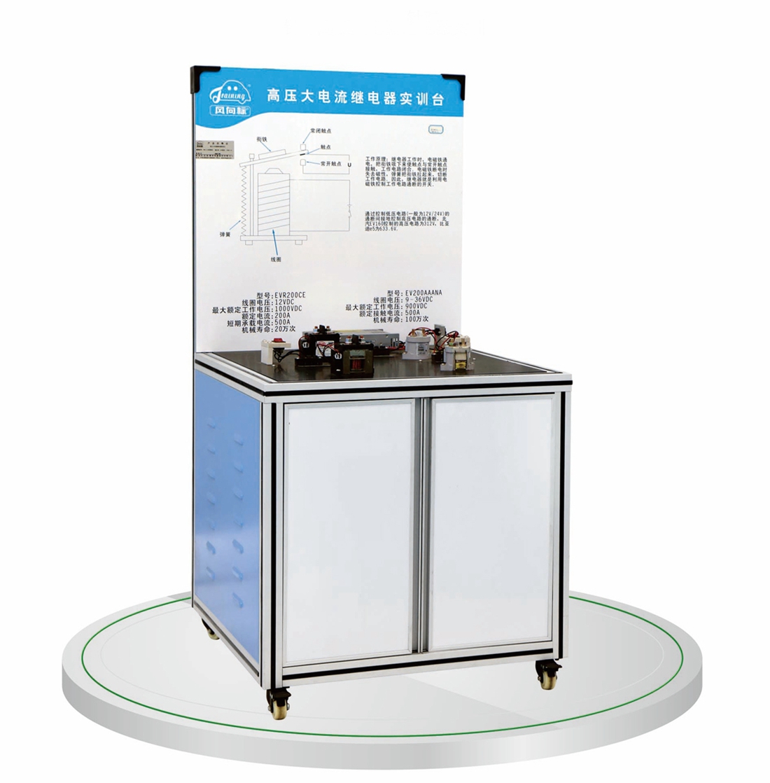高壓大電流繼電器EV200AAANA(兩件,其中一件解剖),高壓大電流繼電器EVR200CE(兩件,其中一件解剖),數字式萬用1件,開關電源1件,手動帶燈開關2件,可移動平臺和教板。