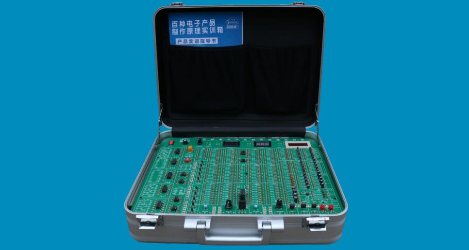 1、本套百種電子產品制作原理實訓箱,是在原有電工電子通用實驗板基礎上的升級換代產品,首先由原來的注塑殼體結構,換成了現在的高檔純鋁一次性擠壓成型箱體;其次把原來的分立元件插接,換成了現在的固定原件導線連接,省去了課前分發器件,課后收集整理期間的繁瑣事務,節約了課堂時間,也減少了器件丟失損壞的概率。 2.實驗指導書介紹
