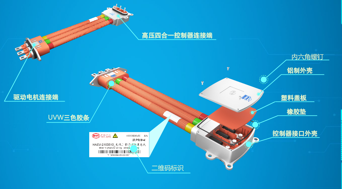 選用比亞迪e5原裝電機三相交流線束總成共2套,一套用于拆裝練習和絕緣性能檢測,另外一套電纜線中間解剖用于結構認識;通過講師講解和學生實際操作,學員可以掌握新能源汽車高壓安全操作的要領。