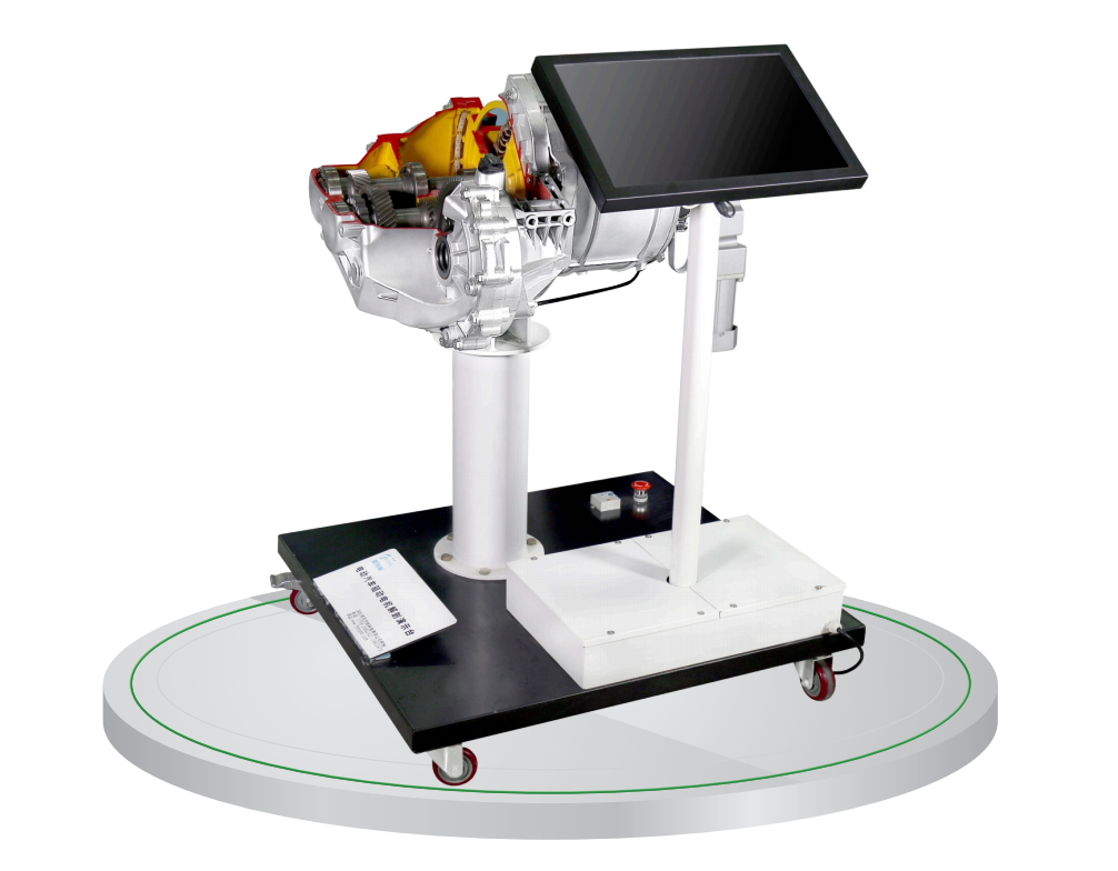 驅動電機是電動汽車動力輸出設備,目前電動汽車使用最為廣泛的為永磁同步電機。本實訓臺采用比亞迪e5原裝驅動電機+變速箱實物進行解剖,充分展示電動汽車驅動電機和變速箱內部結構和工作原理。