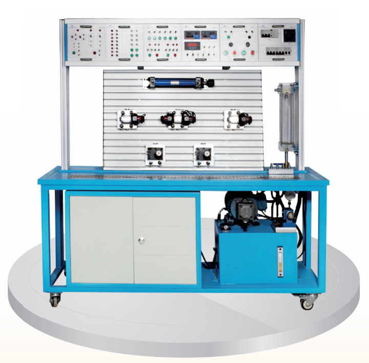 ●透明液壓傳動(dòng)實(shí)訓(xùn)裝置主要由實(shí)訓(xùn)桌、實(shí)訓(xùn)臺(tái)、液壓元件和電器控制器件。