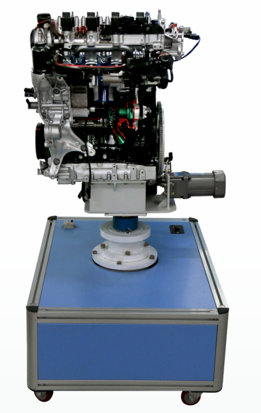 1. 通過電動機動力,使解剖模型能夠正常運轉,演示曲軸、凸輪軸的轉動,活塞的工作;展示進排氣門的開啟和關閉,配氣正時和點火正時,以及整個正時機構的工作狀態,演繹發動機工作循環。