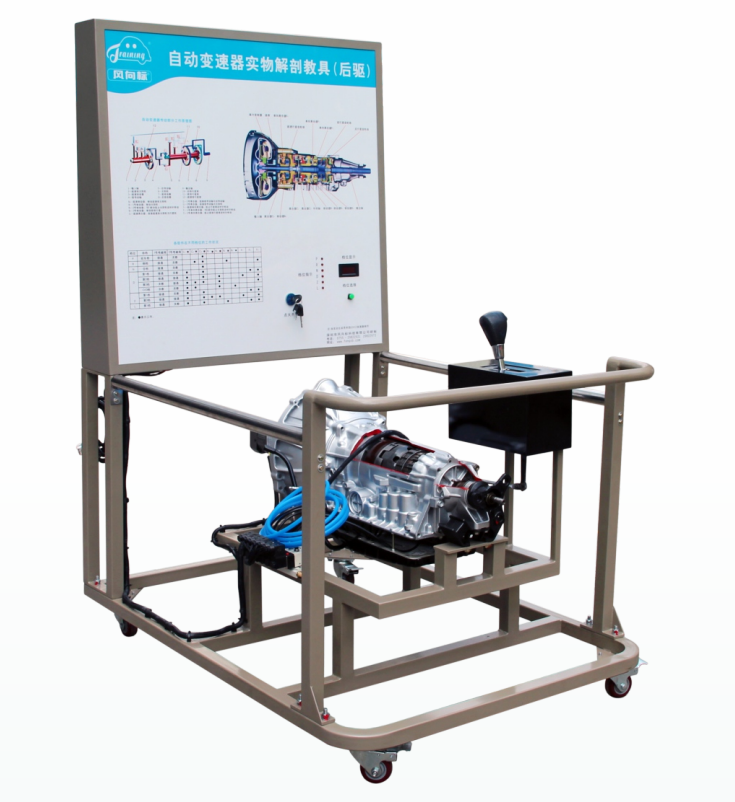 該設(shè)備采用豐田A341E電控自動變速器總成為基礎(chǔ),用三相齒輪減速感應(yīng)電機做動力源,使用高壓氣體推動用油元件動作來實現(xiàn)變速器的換擋過程,可對解剖后的自動變速器進行檔位顯示、空檔起動、前進檔及倒檔運行等工況實踐操作,可全面展示電控自動變速器內(nèi)部組成結(jié)構(gòu)及各檔位用油元件的工作過程。適用于中高等職業(yè)技術(shù)院校、普通教育類學(xué)院和培訓(xùn)機構(gòu)對自動變速器理論和維修實訓(xùn)的教學(xué)需要。