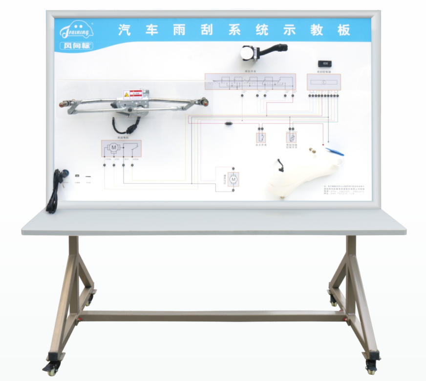 檢測控制面板,點火開關,雨刮開關,雨刮總成,噴水電機,噴水壺,雨刮繼電器,智能故障設置和考核系統,移動臺架(帶自鎖腳輪裝置)。