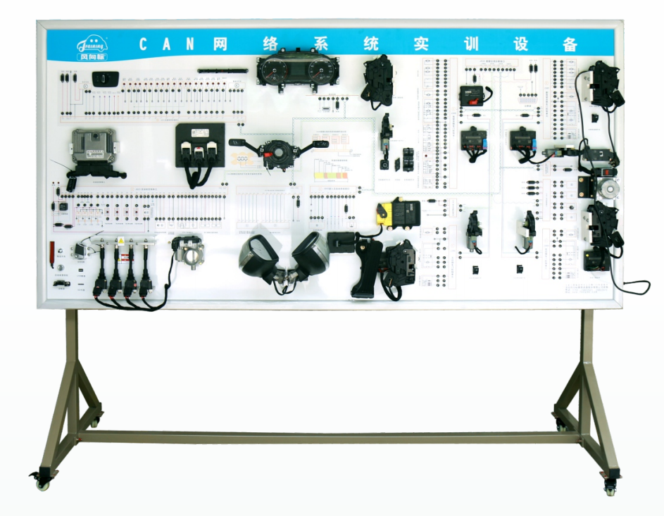 2.示教板面板米用耐腐蝕、耐創(chuàng)擊、耐污染、防火、防潮的高級(jí)鋁塑板,表面經(jīng)特殊工藝噴涂底漆處理;面板打印有永不褪色的彩色電路圖,表面噴涂光油;學(xué)員可直觀對(duì)照電路圖和實(shí)物,認(rèn)識(shí)和分析車載網(wǎng)絡(luò)系統(tǒng)的工作原理。