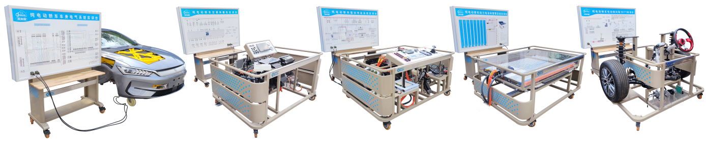 將一輛整車分成5大系統(tǒng)實(shí)訓(xùn)臺(tái),分別為車身電氣系統(tǒng)實(shí)訓(xùn)臺(tái)、空調(diào)和暖風(fēng)系統(tǒng)實(shí)訓(xùn)臺(tái)、驅(qū)動(dòng)傳動(dòng)系統(tǒng)實(shí)訓(xùn)臺(tái)、動(dòng)力電池和管理系統(tǒng)實(shí)訓(xùn)臺(tái)、電動(dòng)轉(zhuǎn)向助力EPS實(shí)訓(xùn)臺(tái),組成一站式教學(xué)系統(tǒng),一鍵控制,5臺(tái)設(shè)備聯(lián)接在一起運(yùn)行,和實(shí)車運(yùn)行工況相近,便于學(xué)員多個(gè)角度去學(xué)習(xí)分析和認(rèn)知;適用于本科、中高等職業(yè)技術(shù)院校和培訓(xùn)機(jī)構(gòu)對(duì)純電動(dòng)整車?yán)碚摵途S修實(shí)訓(xùn)的教學(xué)需要。