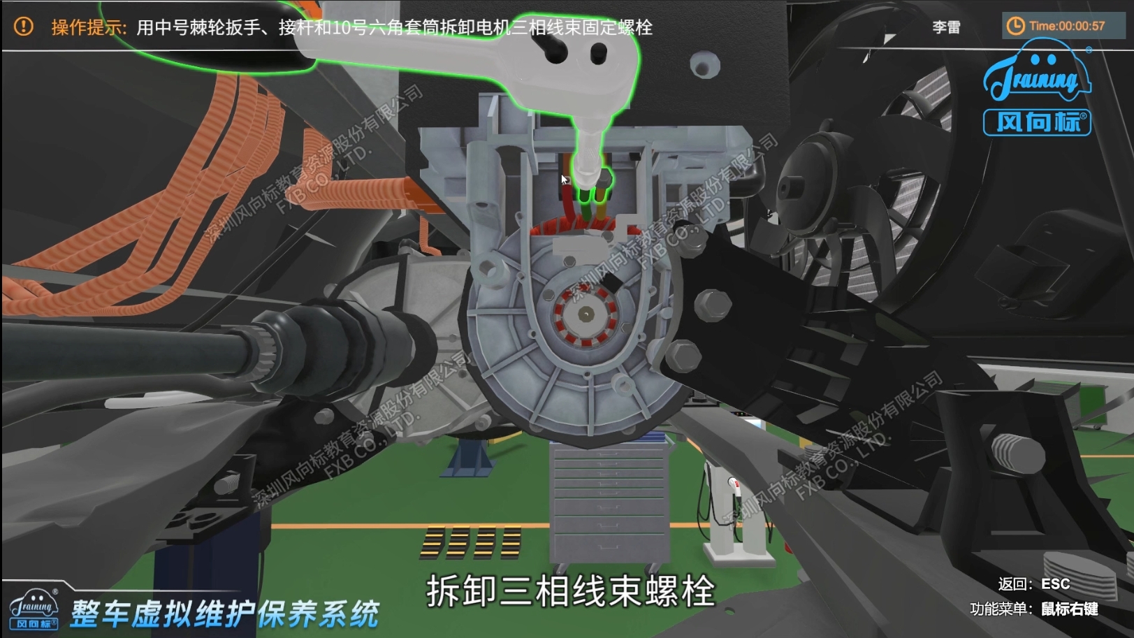 軟件以秦PLUS EV為參考開發,模擬整車維護保養常規檢查、部件檢測、拆裝和更換等內容,有教學、訓練和考核三個模式。