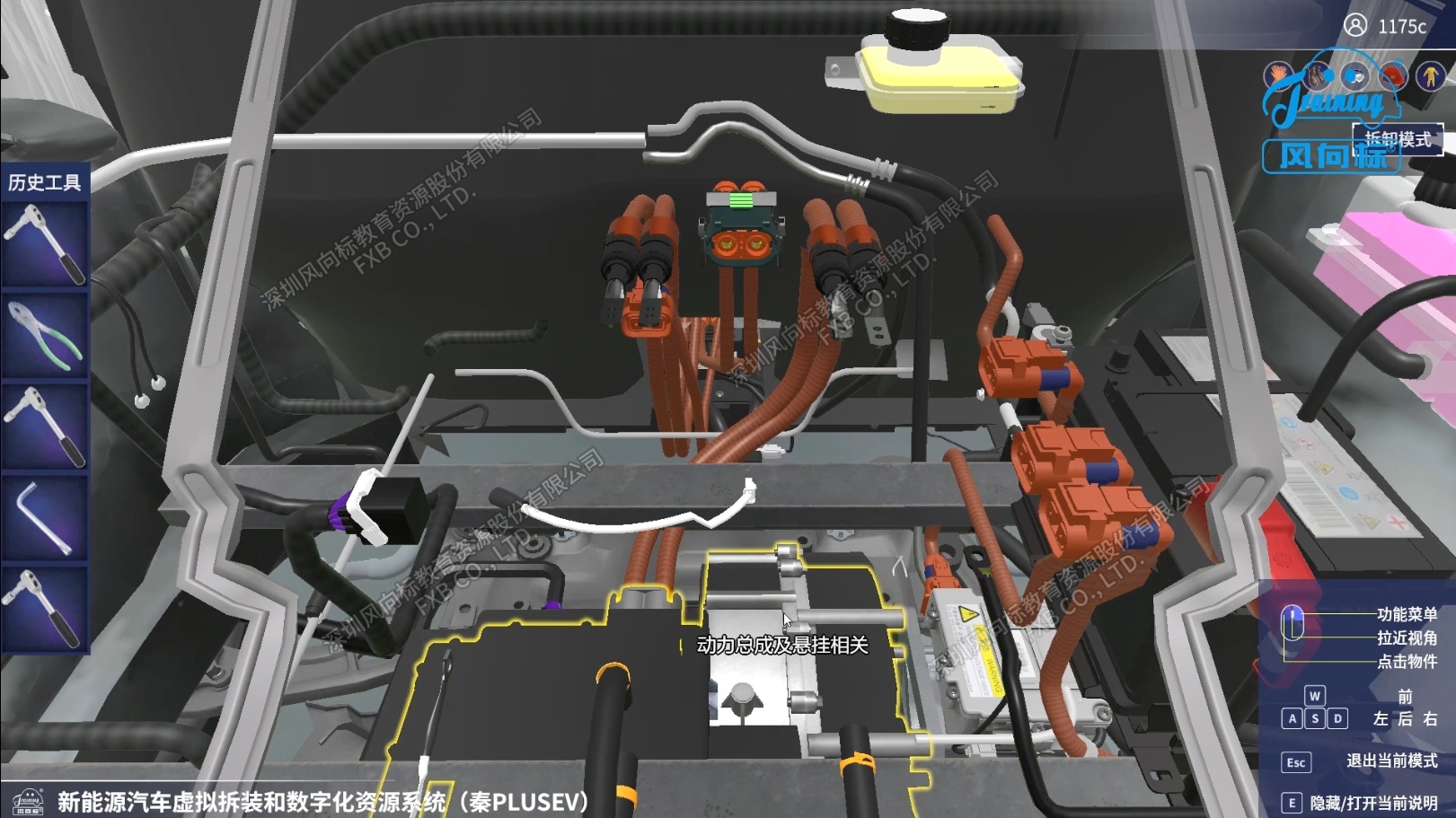 軟件模擬秦PLUS EV整車拆裝的操作過程,有實訓、考核、教學三種模式。