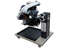 1. 采用大眾帕薩特1.8T電控汽油發(fā)動機總成(易于拆裝),組裝在專用發(fā)動機拆裝翻轉(zhuǎn)架上。2. 采用減速翻轉(zhuǎn)機構(gòu),可使發(fā)動機任意角度旋轉(zhuǎn),并能任意位置鎖止,便于學生從不同的角度進行拆卸和裝配。3. 底部放置大面積接油盤,便于小零件或螺絲的集中存放。4. 拆裝翻轉(zhuǎn)架采用了高強度的鋼結(jié)構(gòu)焊接,表面經(jīng)噴涂工藝處理,底部帶有自鎖腳輪裝置,可移動式,方便教學。